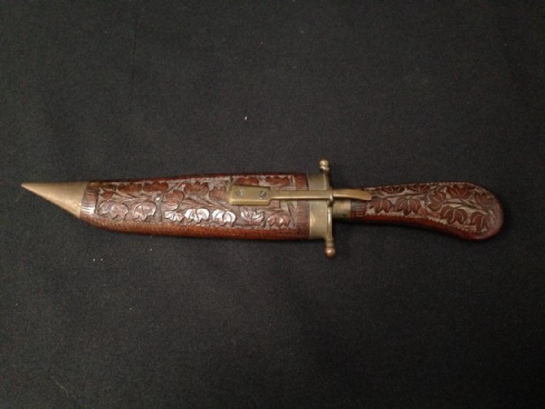 Antique Vintage Brass Hand Carved Wood Sheath Carving Knife And