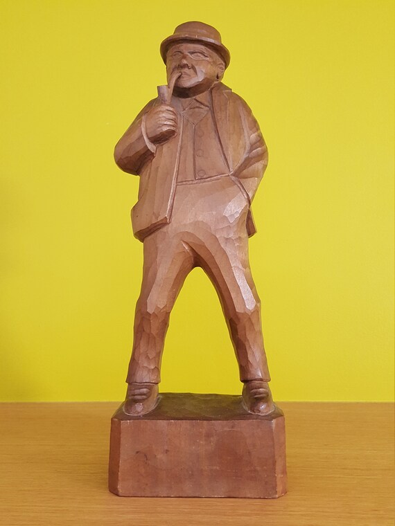 Large Wood Carved Old Man Smoking A Pipe From Germany Old Etsy