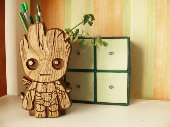 Wooden Baby Groot Pen Holder Baby Groot Holder Carved Baby Etsy