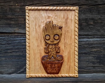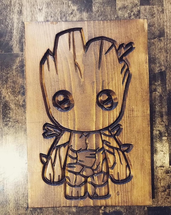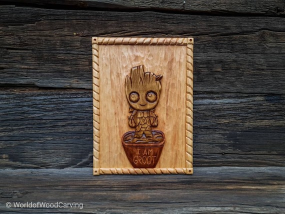 Wood Baby Groot Hand Carved Wood Wall Hanging Wood Carving Etsy