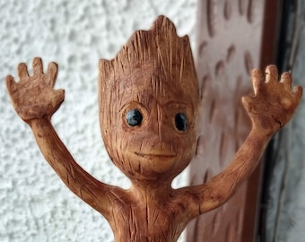 Carved Wooden Angry Baby Groot In Oak Etsy