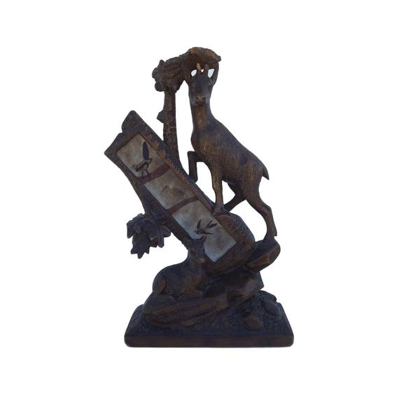 Please see photos in enlarge mode im not a collector of this kind of item so my knowledge is limited however feel free to ask read more. To auction comes this beautiful ibex ram 3d carved from wood in intricate black forest style in brienz switzerland circa 1880. 11 38 tall 6 58 long at base 4 34 wide at base.