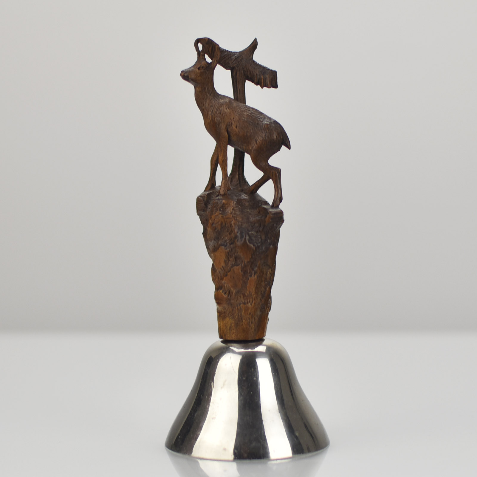 Antique Carved Wood Ibex Buck Figurine Table Bell Brienz Black
