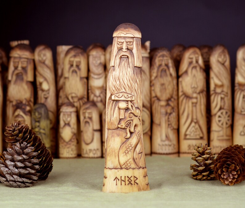 Thor God Wooden Linden Statue The God Thor And The Etsy
