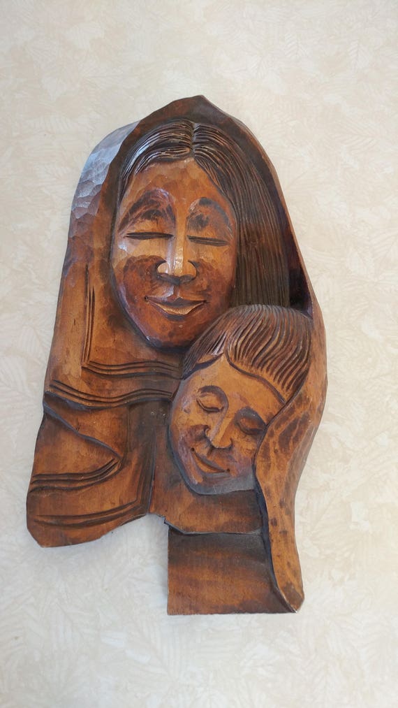 Vintage Mother Child Madonna And Child Wood Carving Wall Etsy