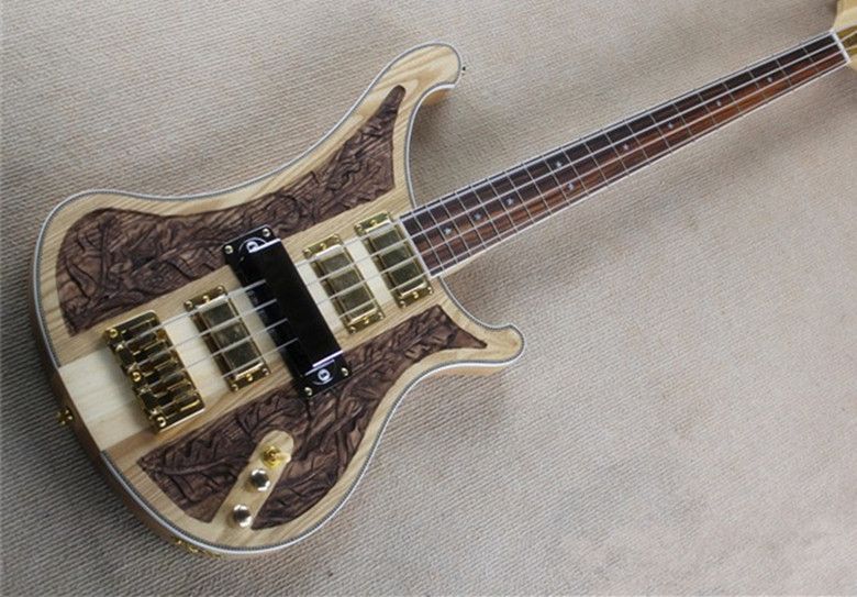 High Quality Wood Carving 4 Strings Bass Guitar 4 Pickup 2 Access