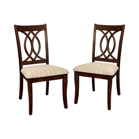Set Of 2 Ladistercurved Wooden Carved Design Back Side Chair Brown