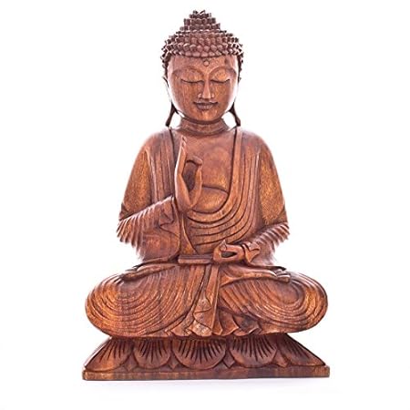 Amazon Com 12 2in Buddha Wood Carved Carving Sculpture Statue