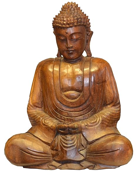 Wooden Buddha Meditating Statue Hand Carved From Suar Wood With