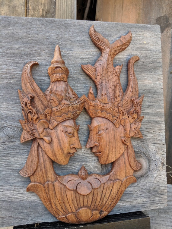 Vintage Carved Wood Wall Plaque Hanging Indonesian Thailand Etsy