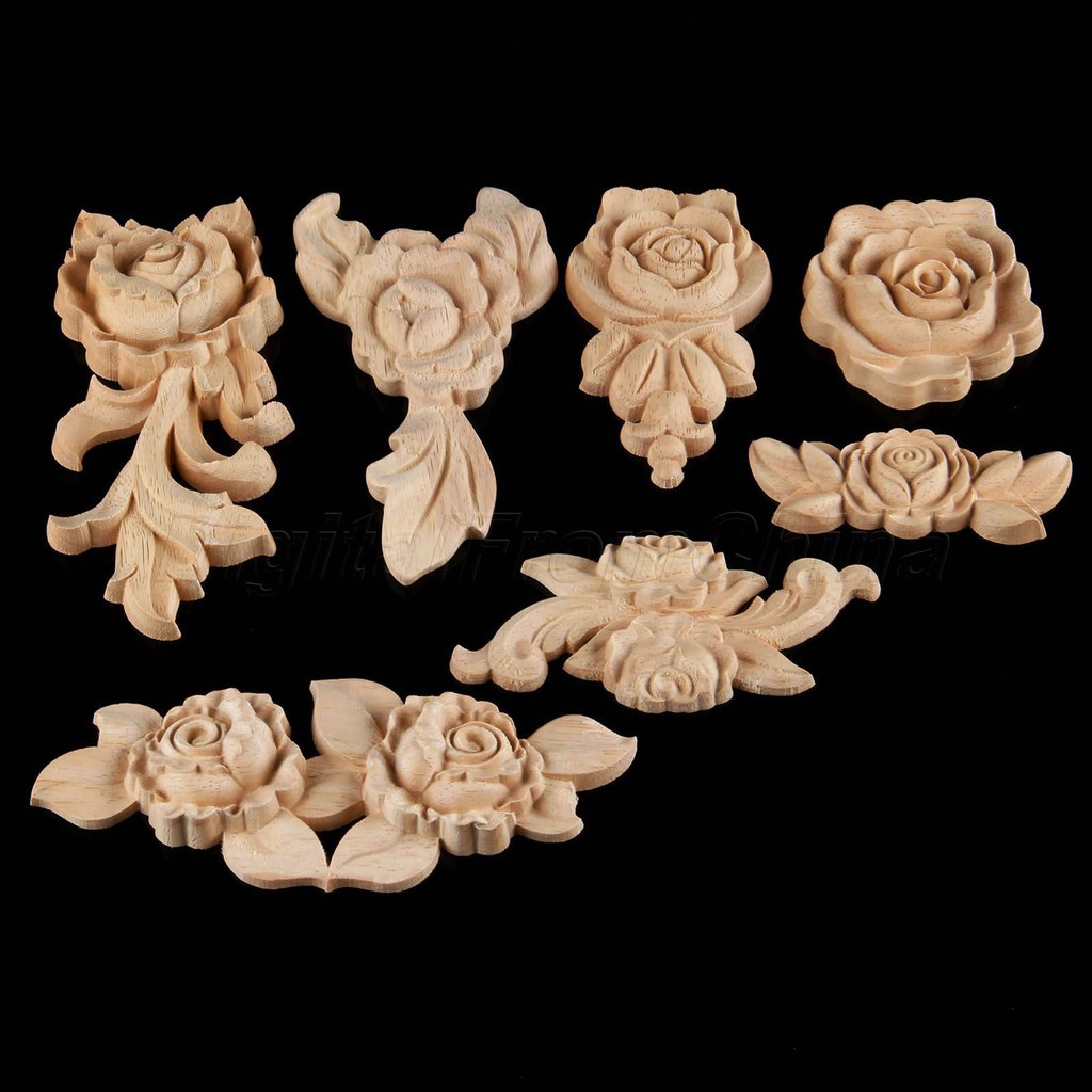 Wood Carving Applique Unpainted Flower Applique Wood Carving Decal