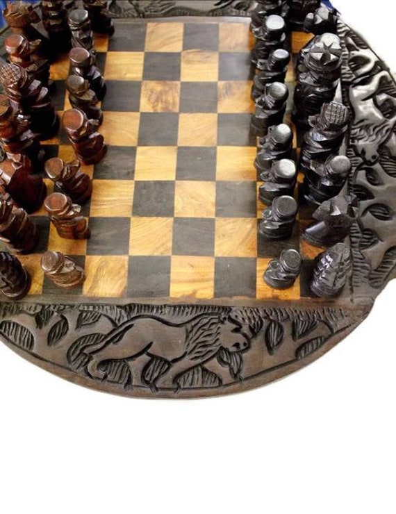 African Wood Carved Chess Board Ebony And Iron Wood Mix With Etsy
