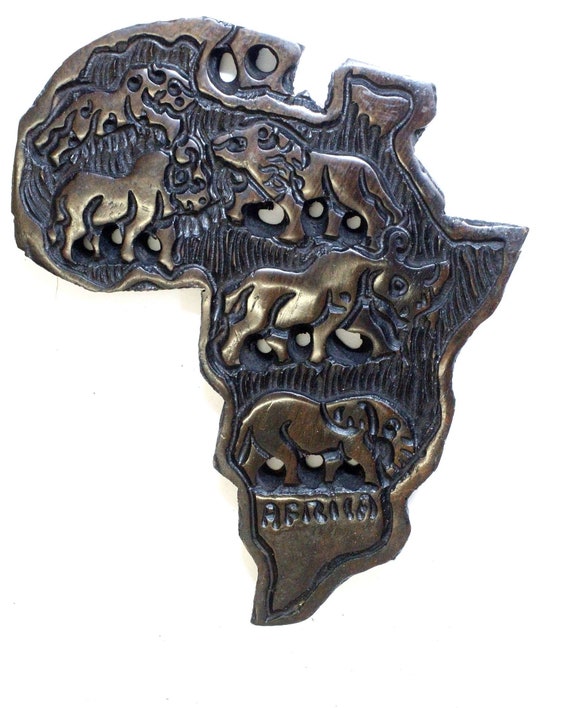 Ebony Wood Big Five Carved African Map Wall Hanging Hand Etsy