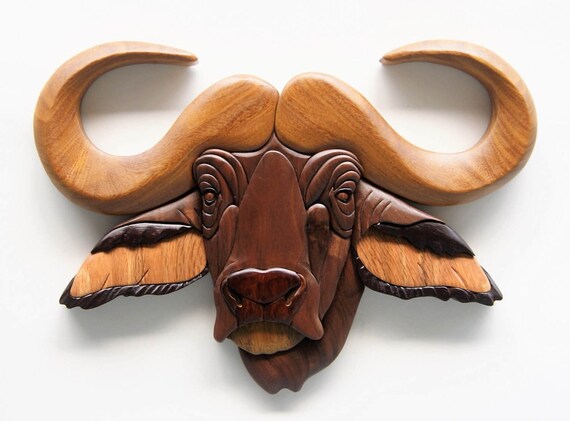 African Cape Buffalo Intarsia Wall Hanging Wooden Bull Carving Etsy