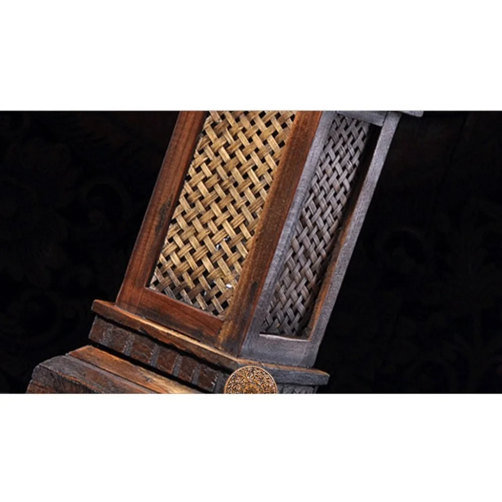 Thai Style Art Wooden Tower Modeling Table Lamp Bamboo Lampshade