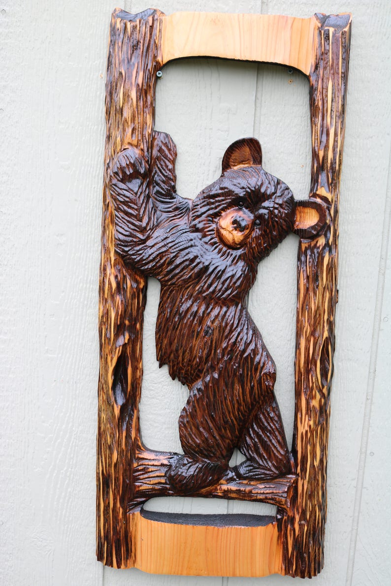 New Chainsaw Carved Bear Against A Tree 32 To 34 Inches Tall Etsy