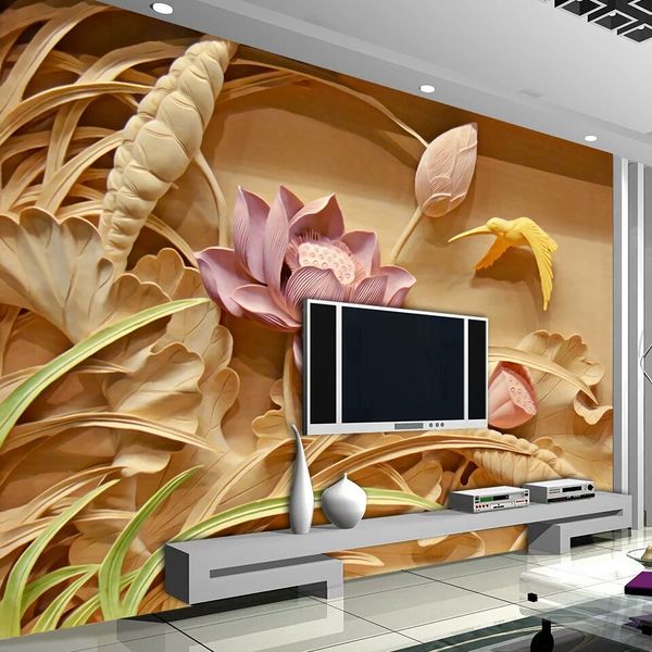 Shop Custom 3d Printing Imitation Wood Carving Lotus Mural Chinese