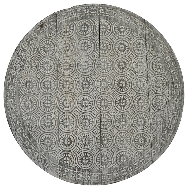 Round Asmat Carved Wood Panel Farmhouse Wall Accents By