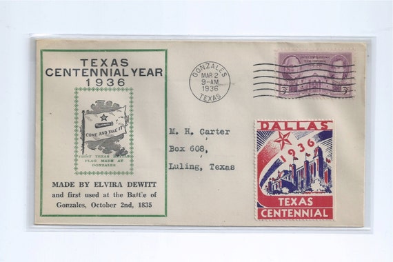 Texas Centennial Year Stamp Fdc On Texas Battle Flag Cachet Etsy