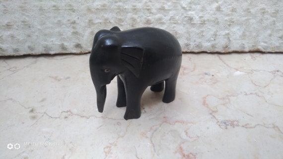 Hand Carved Small Elephant Figurine Statue Made Of Dark Wood Etsy