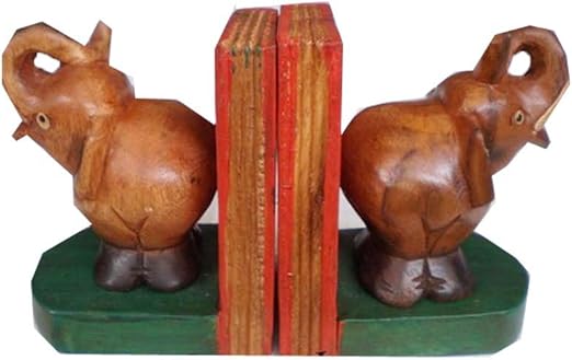 Amazon Com Thaiwara Mini Elephant Wood Carving Bookends Home