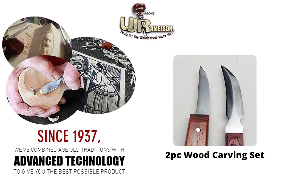 2pc Wood Carving Knife Set Luthier Whittling Decoy Caricature Chip