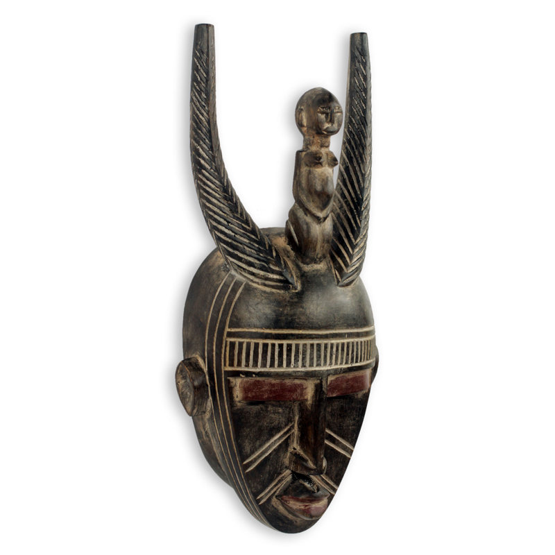 Hand Carved Wood African Mask In Black From Ghana Bambara Ears