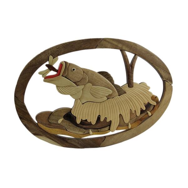 Shop Hand Carved Intarsia Jumping Largemouth Bass Wood Art Wall