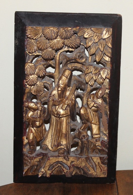 Antique Chinese Gilt Wood Carved Wooden Panel From Grumbla Lane
