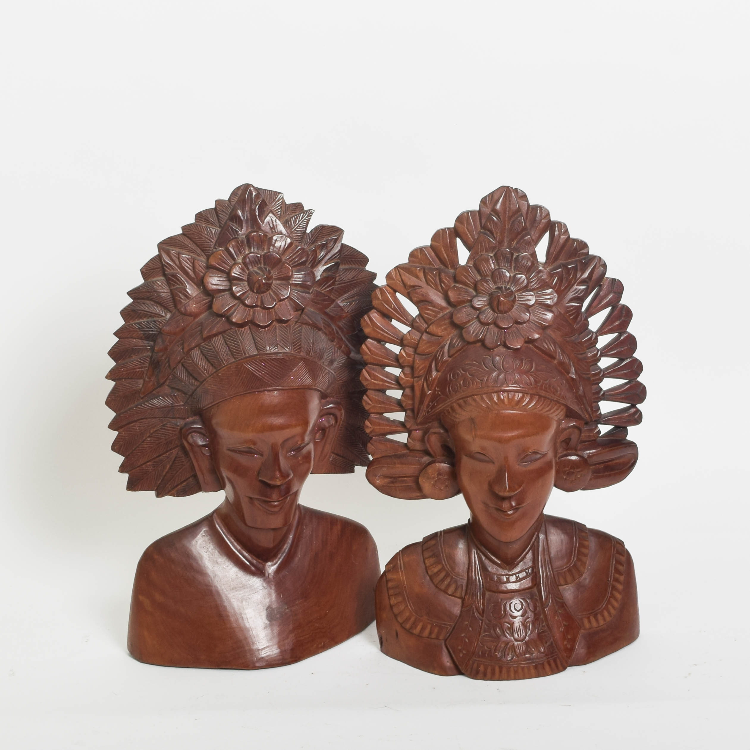 Pair Of Carved Teak Balinese King And Queen Busts Ebth