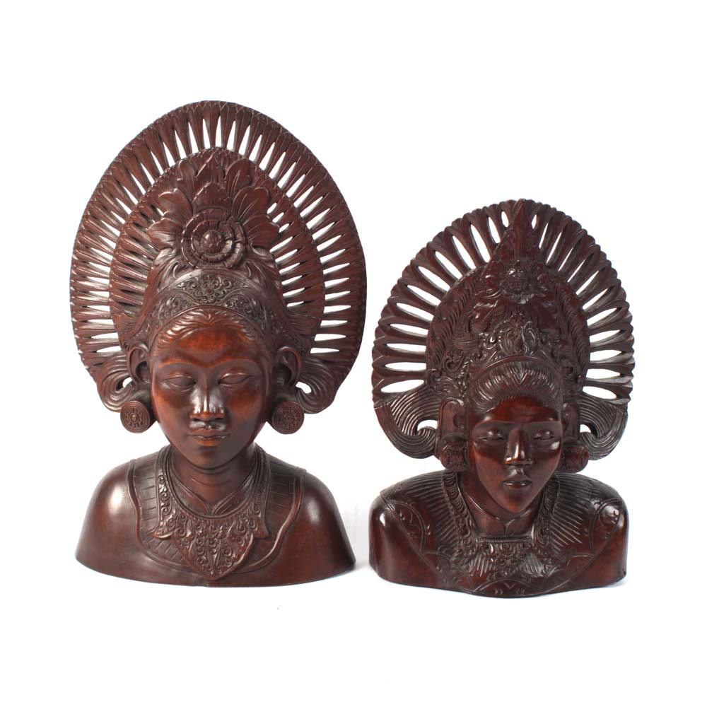 Carved Wood Balinese Busts Ebth