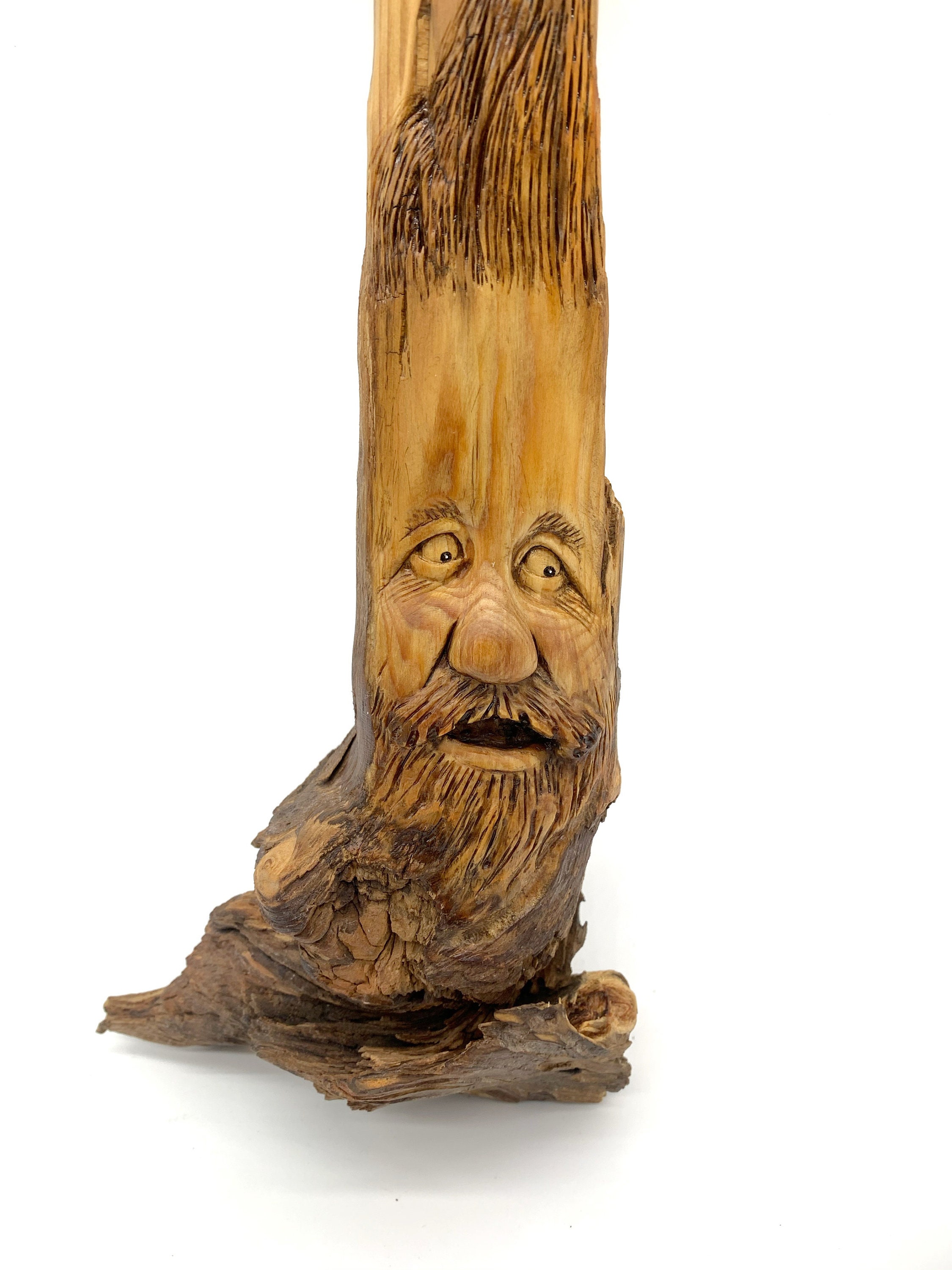 Wood Tree Spirit Carved Forest Face Log Home Gnome Cabin Elf
