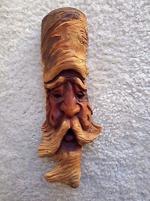 Carved Wood Tree Spirit Wizard Old Man Face Folk Art Unique Signed
