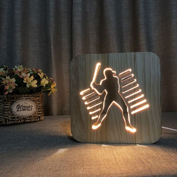 2019 Baseball 3d Lamp Wood Carving Pattern Led Night Light Usb