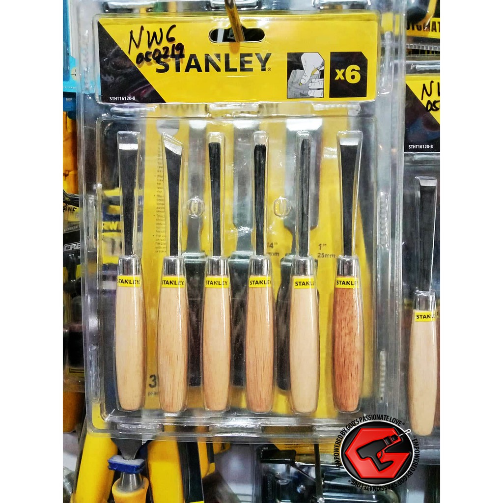 Stanley 16120 Wood Carving Set 6pcs Square Sken Chisel Curved